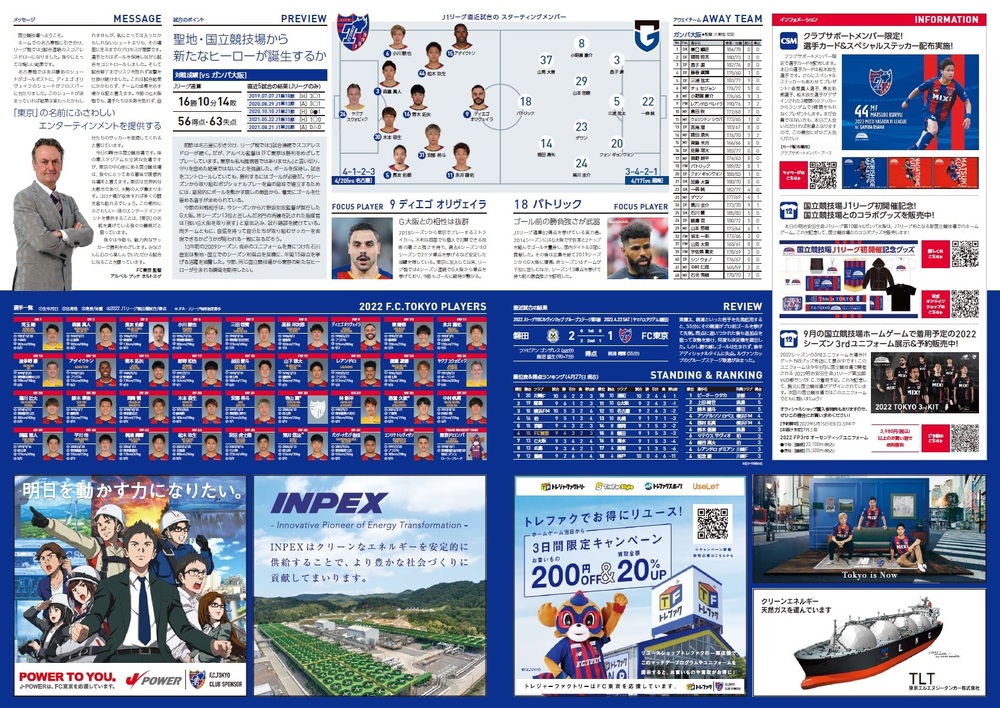 4월 29일(금, 공휴일) 2022 메이지 야스다 생명 J1리그 제10절 vs 감바 오사카(19:00 킥오프/국립경기장) 공식 매치데이 프로그램에 대하여 아래와 같이 안내드립니다.