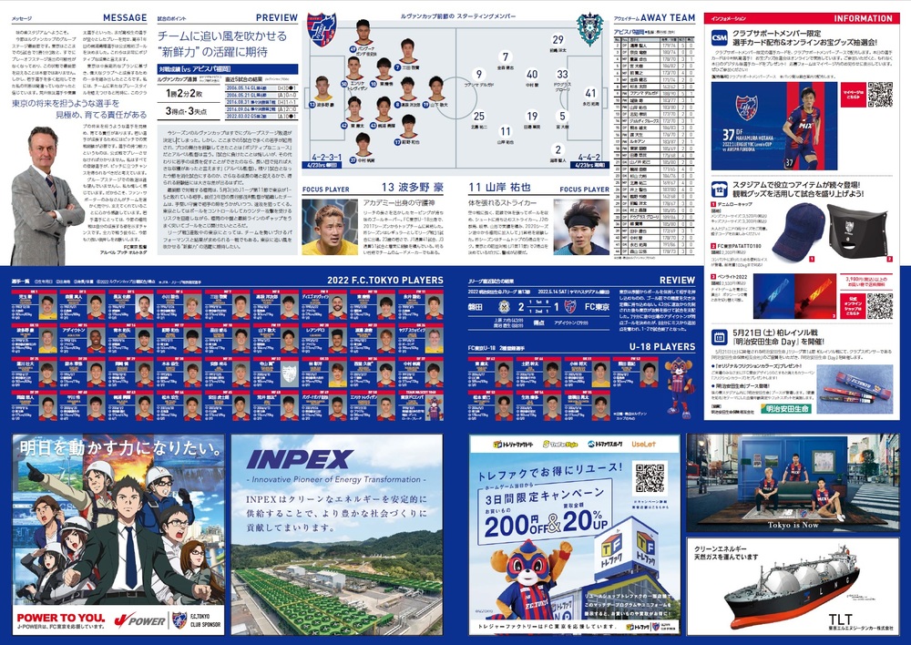 5월 18일(수) 2022 J리그 YBC 르방컵 제6절 vs 아비스파 후쿠오카(19:00 킥오프/아지노모토 스타디움) 공식 매치데이 프로그램에 대하여 아래와 같이 안내드립니다.