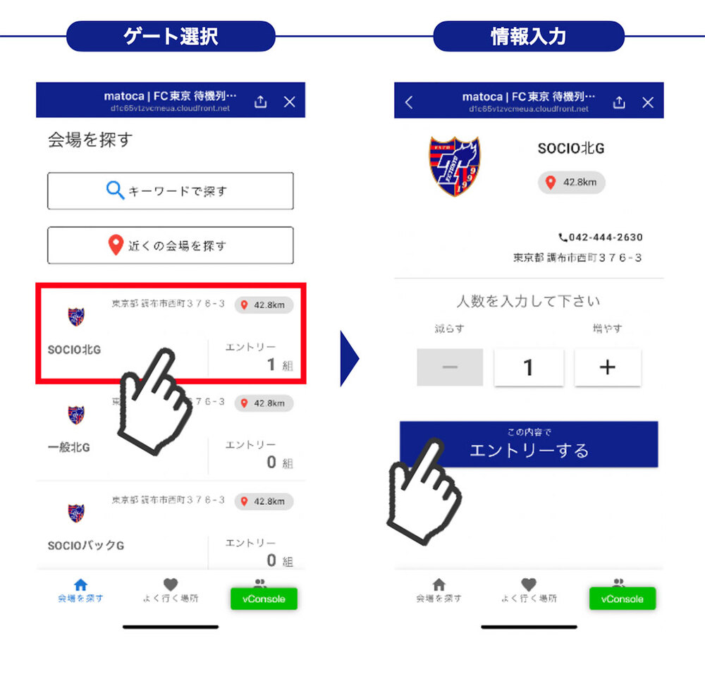 ※법인 연간 티켓 소지자는 희망 게이트에 따라 "SOCIO키타카미G" 또는 "SOCIO백G" 중 하나를 선택해 주세요.