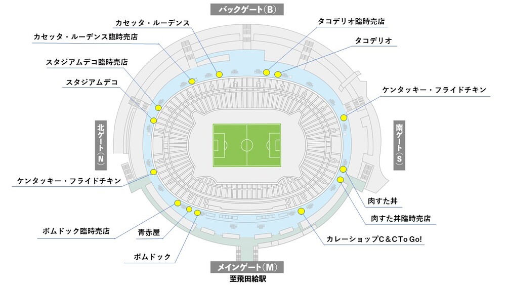 아지노모토 스타디움에서 9월 3일(토) vs 요코하마 F·마리노스(19:00 킥오프/아지노모토 스타디움) 경기의 「아지노모토 스타디움 내 매점」에 관한 안내입니다.
