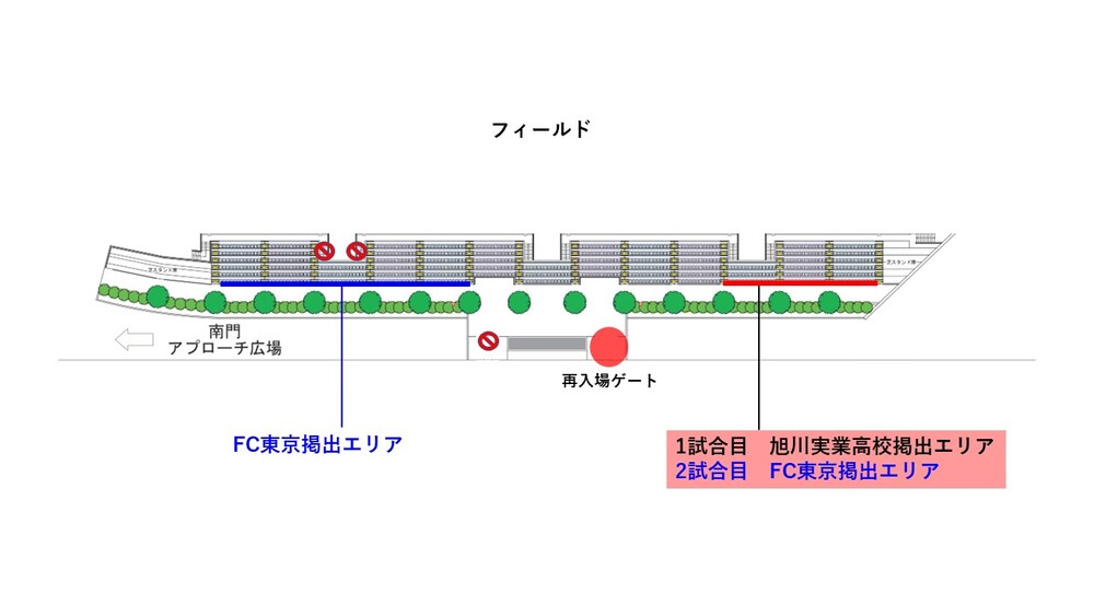 관계자석을 제외한 모든 구역이 FC 도쿄의 관람 및 응원 구역이 됩니다.