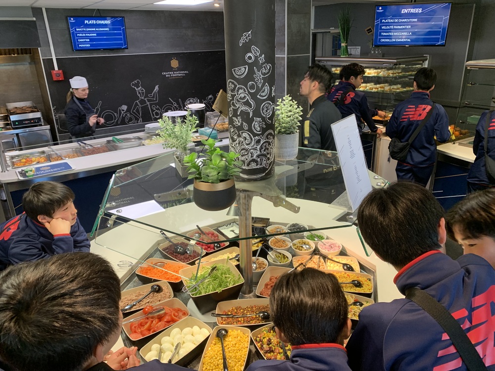 프랑스 원정 3일차인 4월 5일(수) 오전에는 클레르퐁텐이라 불리는 프랑스의 국립경기장 축구 육성소로 이동하여, 시설 내 식당에서 점심을 먹었습니다.
