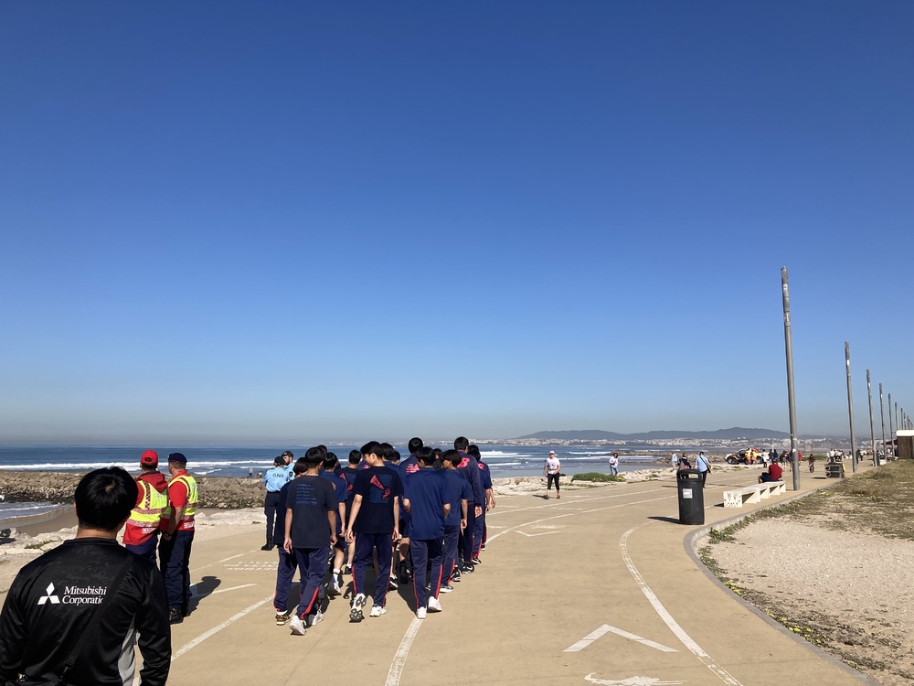아침 식사를 한 후 잠시 휴식을 취하고, 오전에는 18:30 킥오프 경기에 대비해 해안가를 약 1시간 정도 산책했습니다. 이번 숙박지 인근 바다는 서핑으로 유명한 장소이기도 하며, 전 세계 바다를 무대로 열리는 월드 서핑 리그 대회가 개최되고 있어 산책 중에 관람할 수 있었습니다.