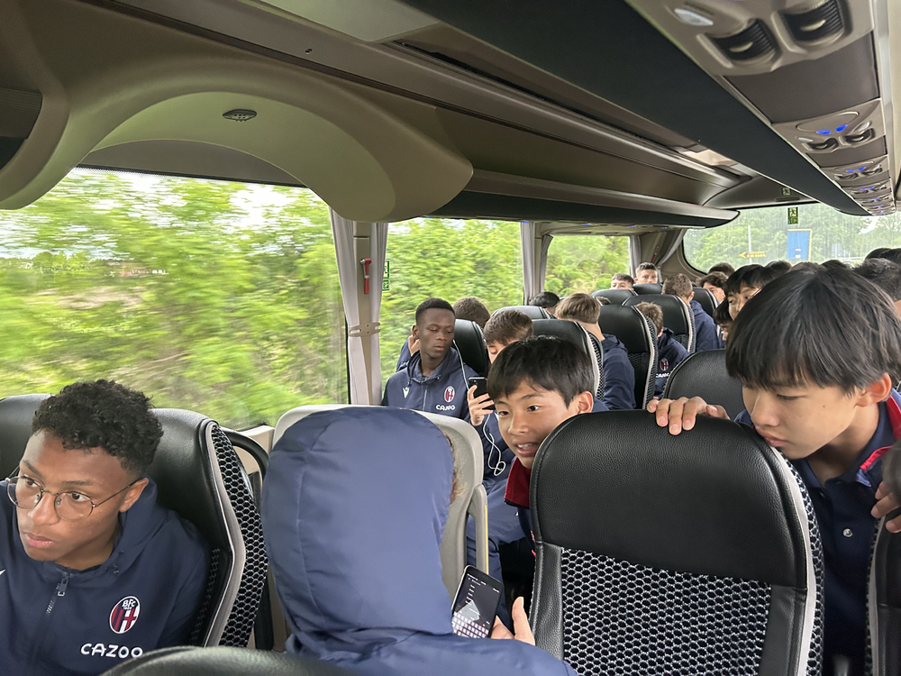 그 후 볼로냐 FC 선수들과 교류하며 버스로 이동했습니다.