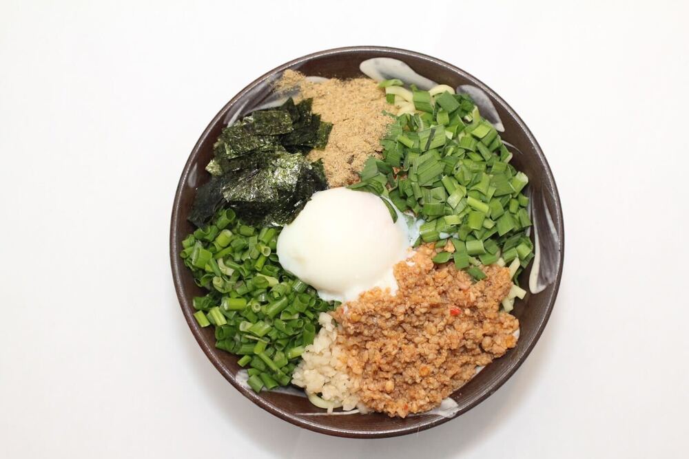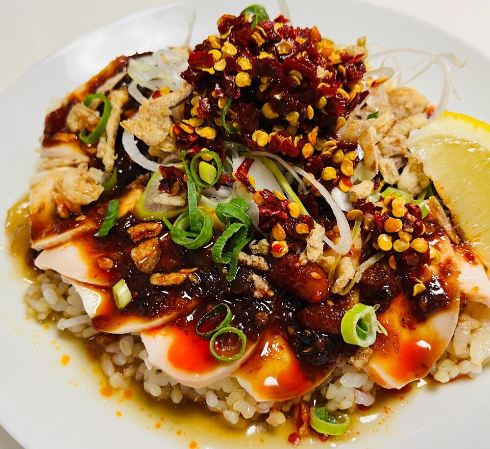・촉촉한 찐 닭 파와 참깨 덮밥 1,000엔