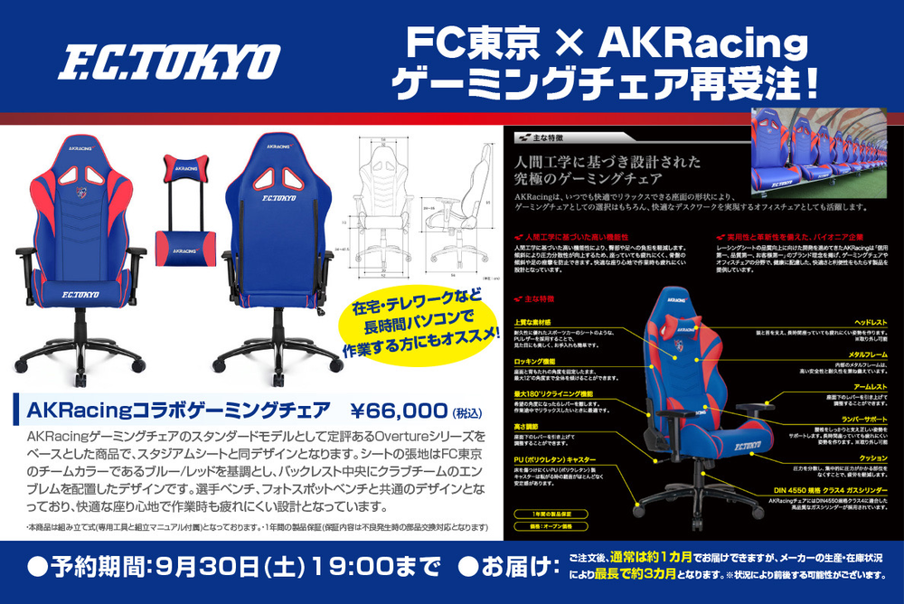 ※AKRacing 게이밍 체어에 대해서는유로스포츠 아지노모토 스타디움점에서만 접수하고 있습니다