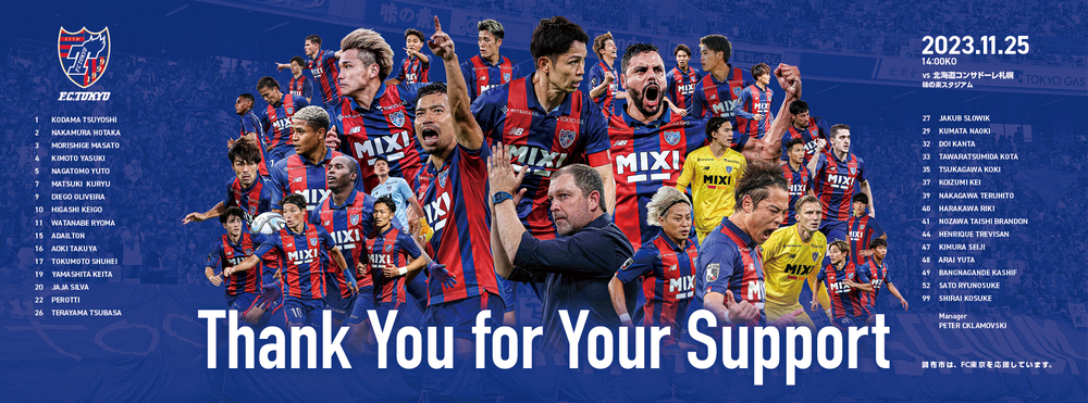 홈 최종전에서 3,000엔 이상(세금 포함) FC 도쿄 굿즈를 구매하신 분들께 선수 직필 응원 감사 메시지가 담긴 사인 색지가 당첨되는 추첨회를 실시합니다.