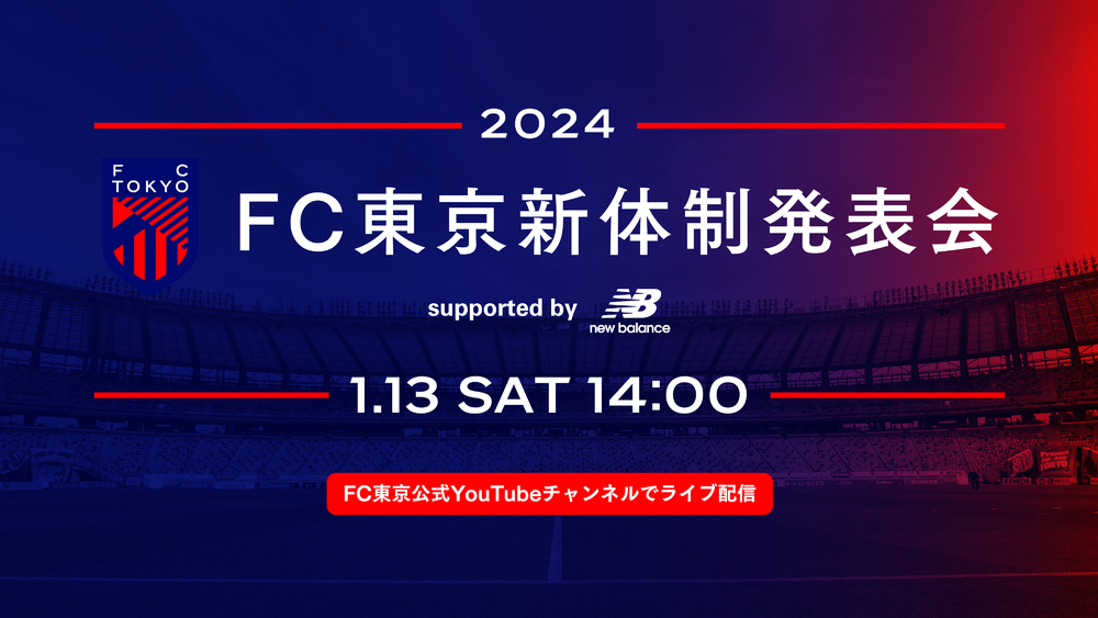 2024년 1월 13일(토)에 FC 도쿄 공식 YouTube 채널에서 「2024 FC 도쿄 신체제 발표회 supported by New Balance」를 라이브 방송합니다.