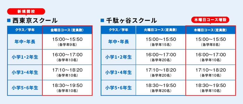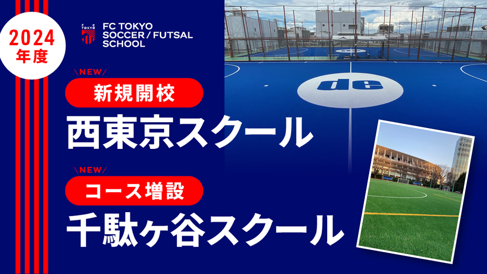 FC 도쿄 축구·풋살 스쿨에서는 2024년 4월부터 새롭게 서도쿄 스쿨을 신설하고 센다가야 스쿨에 목요일 코스를 증설하게 되었습니다.