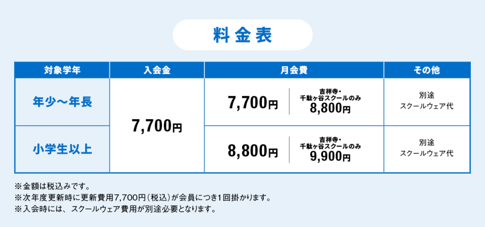 ※이번 신청에서는 4월부터 체험 없이 입회하게 됩니다. 사전 스쿨 체험은 할 수 없습니다.