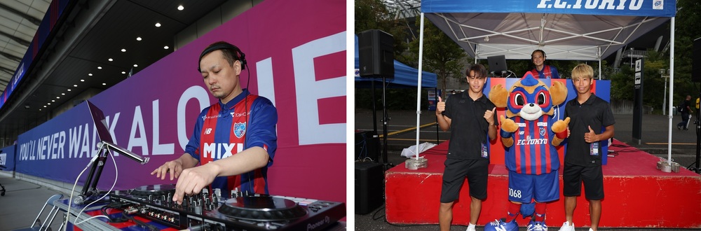 아지펜® 광장과 아지판다 광장에서 개최되는 아오아카 파크에서 DJ 퍼포먼스를 실시합니다. 당일에는 과거 아오아카 파크와 스타디움 내에서 DJ 퍼포먼스를 해주신 DJ SHINGO 씨와 DJ YUMA 씨가 참석하며, FC 도쿄 서포터로도 잘 알려진 개그맨 '유테이' 씨와 '라이언헤드의 모자' 씨가 진행하는 유튜브 프로그램 "바리3TV"의 멤버들도 참석하여 DJ 플레이를 선보입니다. 음악을 들으며 경기 시작 전까지 아오아카 파크를 즐겨 주세요!