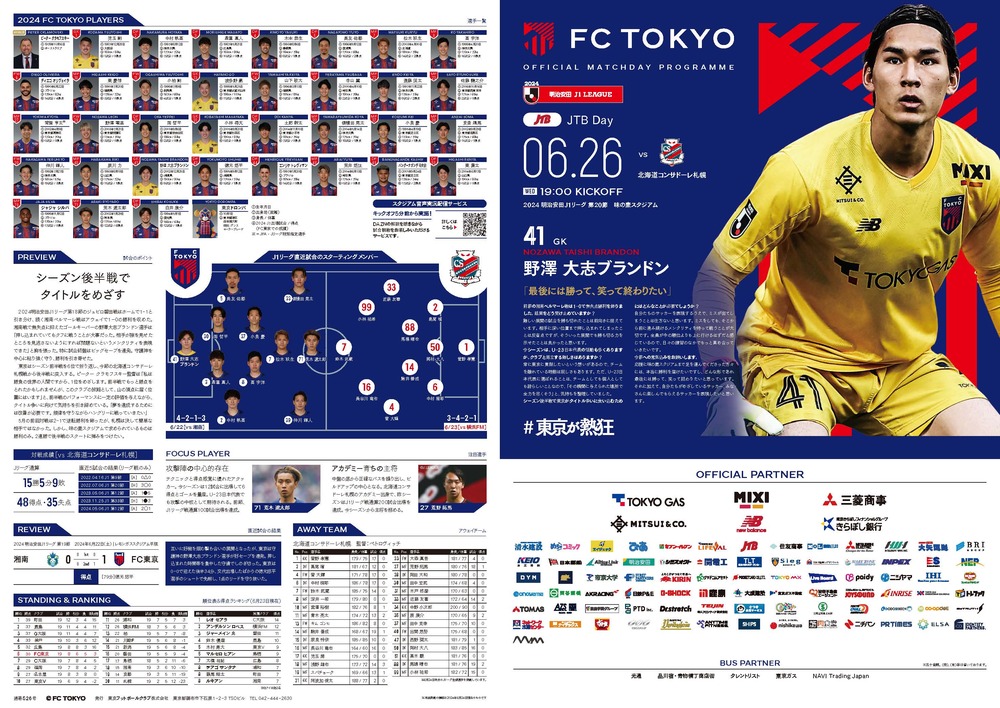 6월 26일(수) 2024 메이지 야스다 J1리그 제20절 vs 홋카이도 콘사도레 삿포로(19:00 킥오프/아지노모토 스타디움) 공식 매치데이 프로그램에 대하여 아래와 같이 안내드립니다.