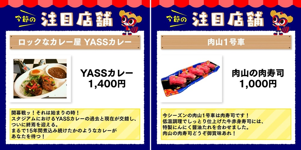 아오아카 파크 supported by JOYPOLIS의 매장이 ①메인 측장외(페데스트리언 데크), ②콘코스(스타디움 내 통로) 임시 매장에 등장합니다!