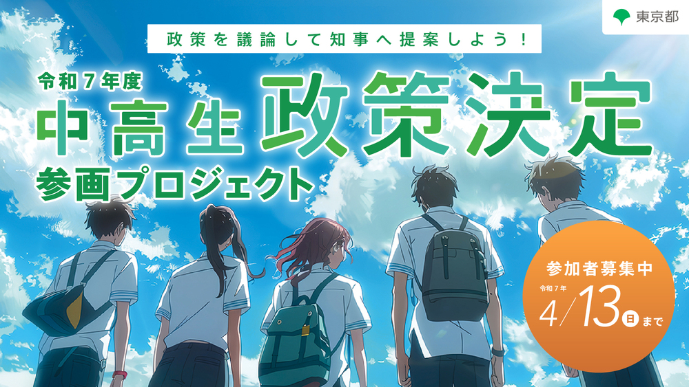 그 노력의 일환으로 현재 중고생이 도지사에게 정책 제안을 하는 「중고생 정책 결정 참여 프로젝트」참가 멤버를 모집하고 있으니 꼭 지원해 주시기 바랍니다.