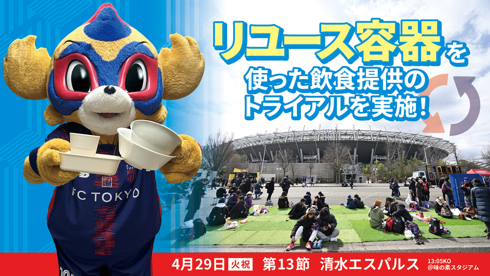 4월 29일(화공휴일) 2025 메이지 야스다 생명 J1 리그 제13절 vs 시미즈 에스펄스 (13:05 킥오프/아지노모토 스타디움)에서는 스포츠계에서 일회용 플라스틱 쓰레기를 없애는 것을 목표로 하는 「HEROs PLEDGE」와 연계한 계몽 캠페인의 일환으로, 아오아카 파크 supported by JOYPOLIS에서 제공하는 음식의 일부를 리유즈 용기를 사용하여 제공하고, 효과 검증을 위한 트라이얼 정책을 실시합니다.