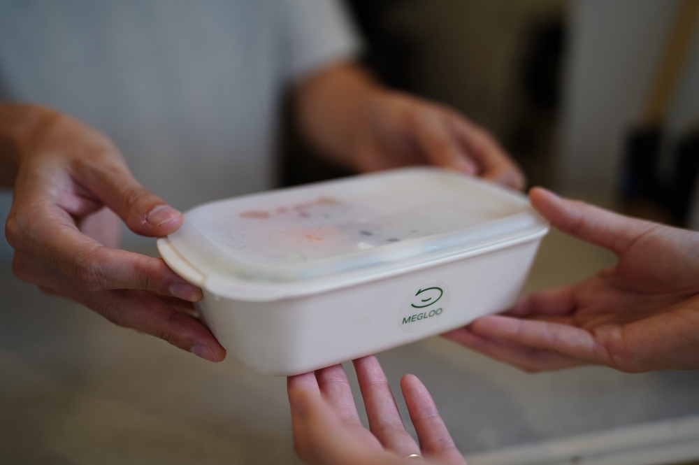 【리유즈 용기로 음식 제공을 하는 점포】