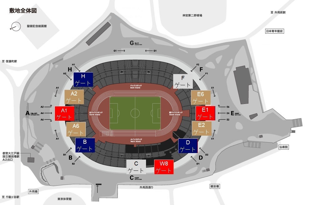 티켓 종류에 따라 입장 게이트가 다릅니다. 본인의 티켓 종류에 맞는 게이트로 입장해 주시기 바랍니다. 같은 좌석 종류라도 북쪽, 남쪽 및 층에 따라 입장 게이트가 다르니 주의해 주십시오.