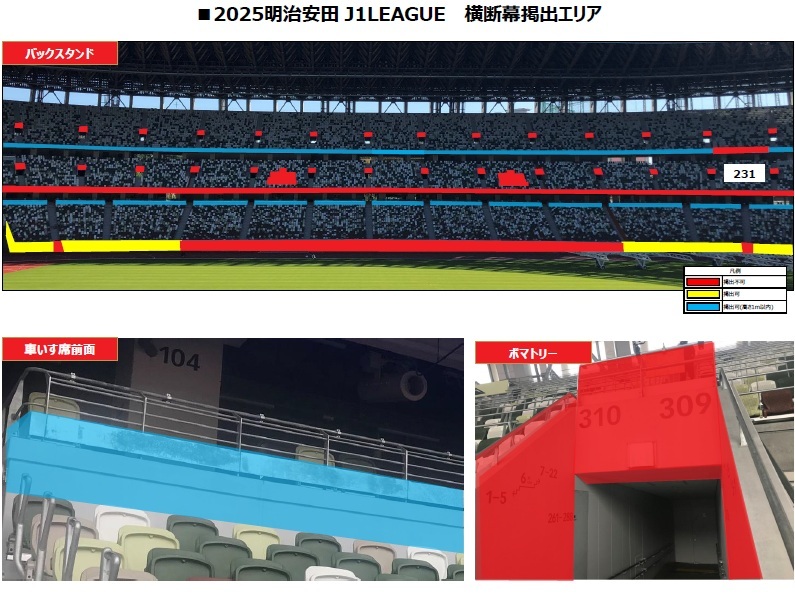 ・비방 중상이나 차별로 받아들여질 수 있는 배너(깃발·횡단막 등)의 게시 및 행위를 금지하고 있습니다. 사회 일반의 상식으로서, 또한 당 클럽으로서 비방 중상이나 차별에 해당한다고 판단할 경우, 게시물은 철거하며, 행위에 대해서는 경고를 하고, 멈추지 않을 경우 퇴장 조치합니다. 또한, 그러한 금지 행위가 발생한 경우 이후 경기 입장 금지 처분을 받을 수 있습니다.