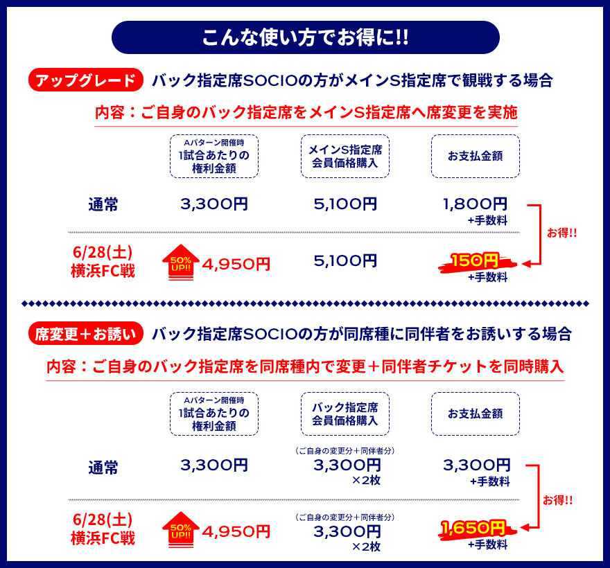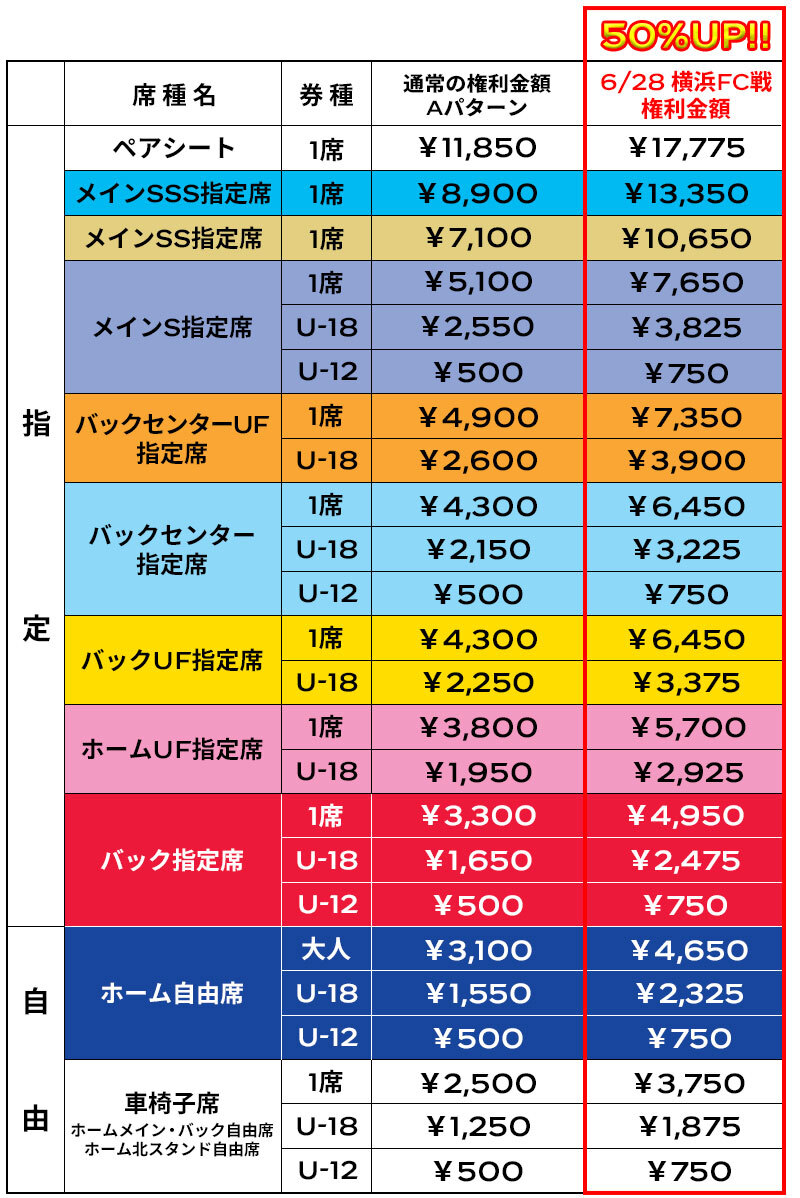 통상적으로 권리금액은 각 경기의 '회원 가격'으로 설정되어 있으나, 6월 28일(토) 요코하마 FC전에서는 이 권리금액이 50% 인상됩니다!