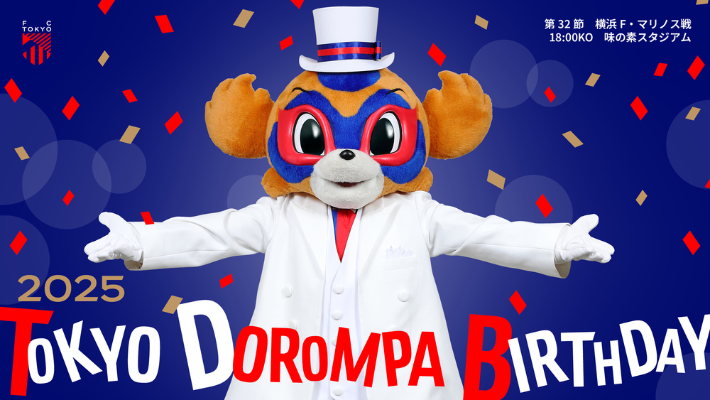 9월 28일(일) 2025 메이지 야스다 J1리그 제32라운드 vs 요코하마 F·마리노스 (18:00 킥오프/아지노모토 스타디움)에서 '2025 TOKYO DOROMPA BIRTHDAY EVENT' 개최가 결정되었습니다.