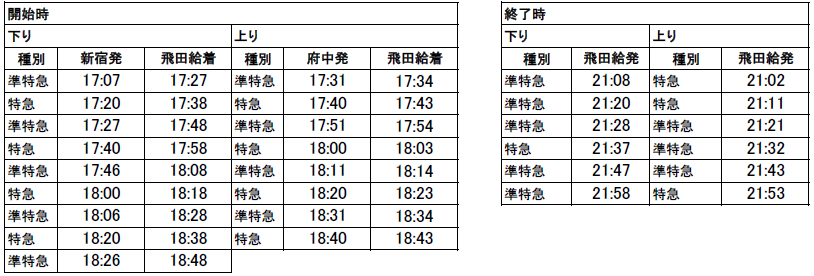 하행…신주쿠 출발 17:07~18:26 특급·준특급/총 9편