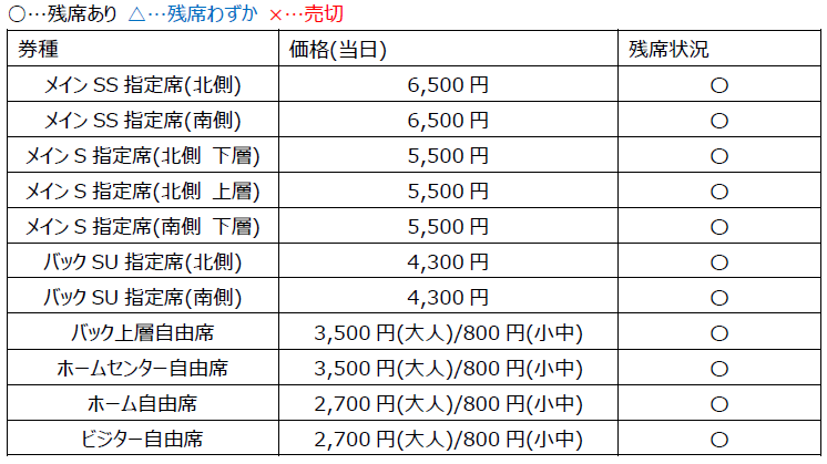 ※사전 판매 단계에서 홈 자유석이 매진된 경우, 경기장 밖에서의 당일 할인 판매는 하지 않습니다.