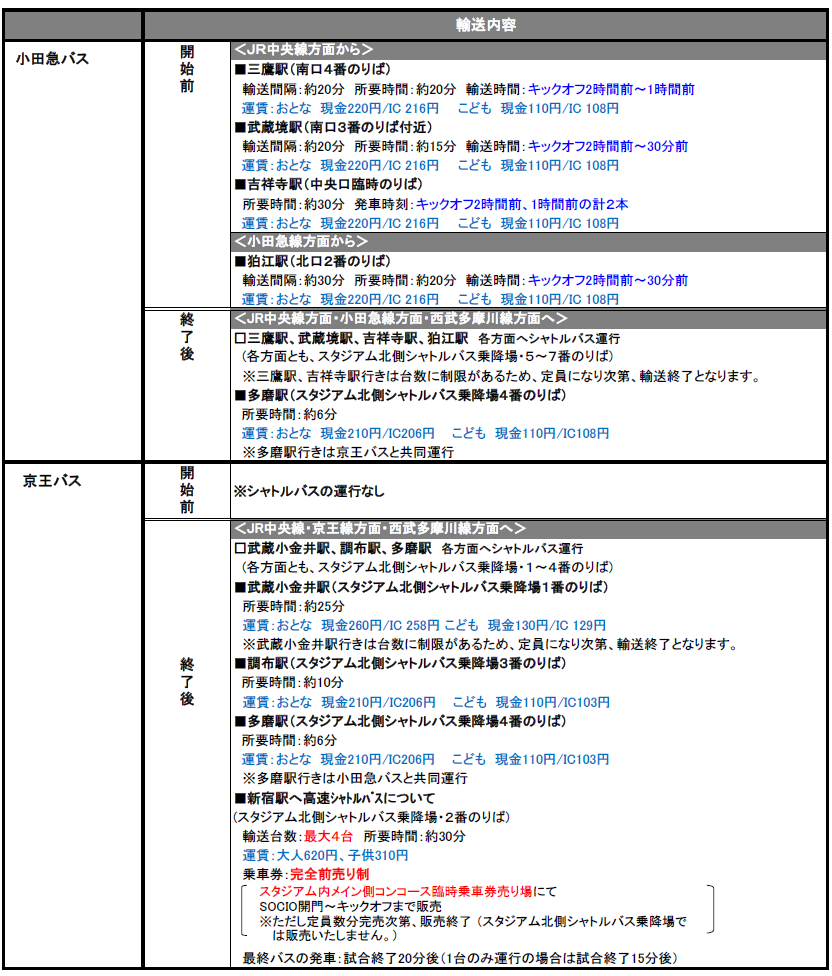 10/20(토) 2018 메이지 야스다 생명 J1리그 제30라운드 vs 세레소 오사카(19:00 킥오프 / 아지노모토 스타디움)에서 운행되는 셔틀버스·노선버스에 대해 안내드립니다.