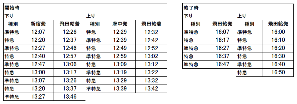 하행…신주쿠 출발 12:07~13:27 특급·준특급/총 9편