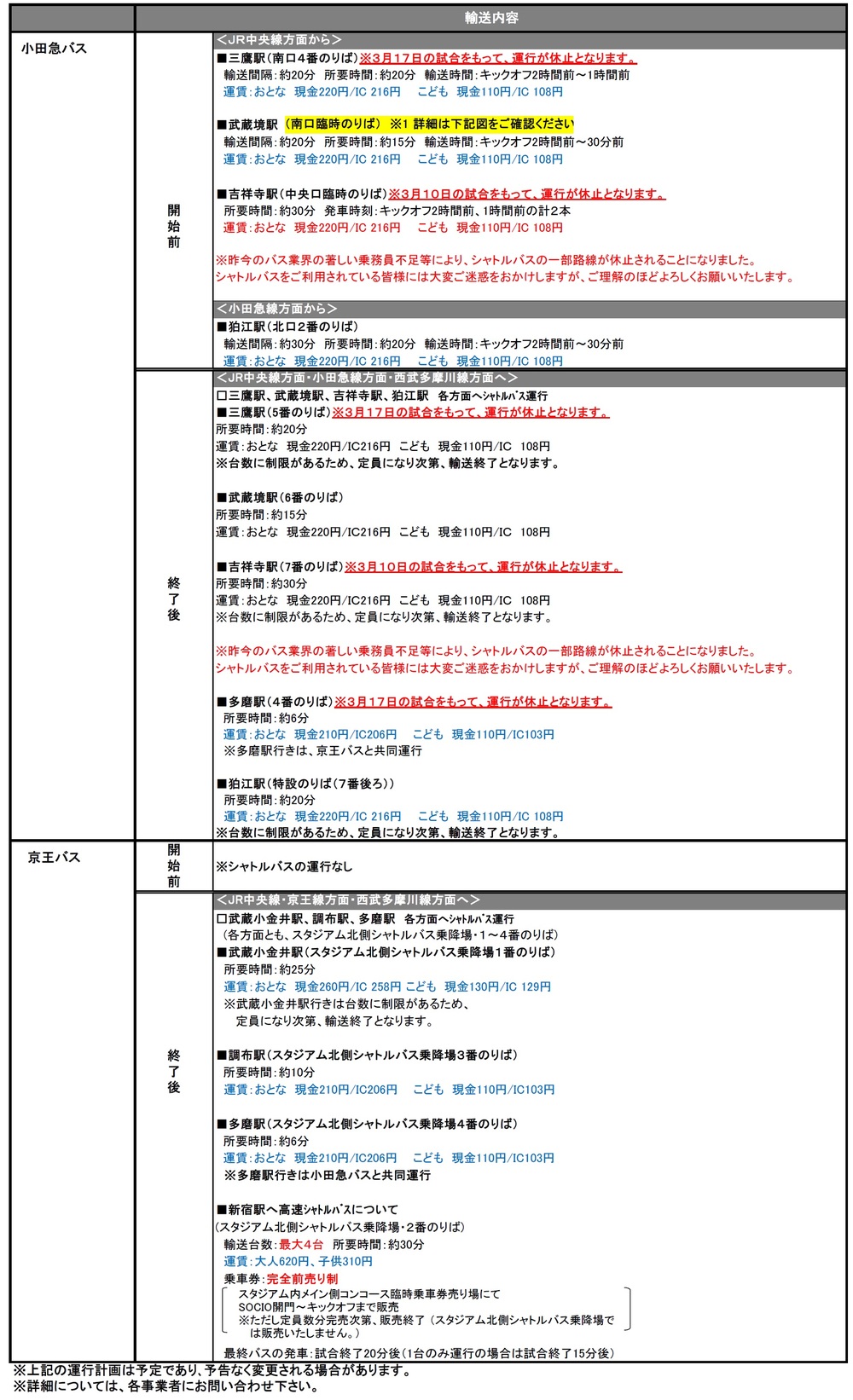 【3/9(토)추가】오다큐 버스에서 무사시사카이역 남쪽 출구 아지노모토 스타디움 직행 버스 승차장 변경 안내를 추가했습니다.