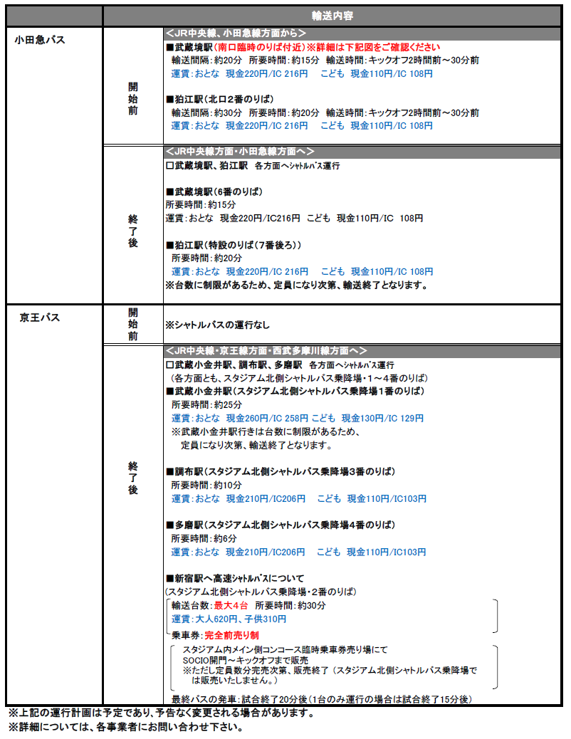 4/6(토) 2019 메이지 야스다 생명 J1 리그 제6절 vs 시미즈 에스펄스(14:00 킥오프/아지노모토 스타디움)에서 운행되는 셔틀버스·노선버스에 대해 안내드립니다.