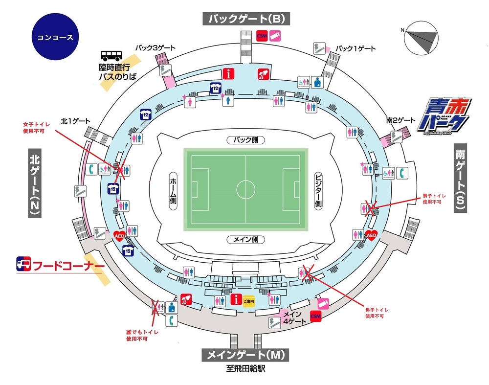 4월 6일(토) 시미즈 에스펄스전 및 4월 14일(일) 가시마 앤틀러스전에서는 아지노모토 스타디움 내 일부 화장실이 개수 공사로 인해 사용하실 수 없습니다.