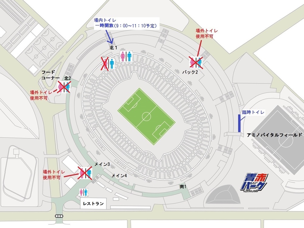 키타1 게이트 콘코스 상 화장실을 9:00~11:10(예정)까지 일시 개방합니다.