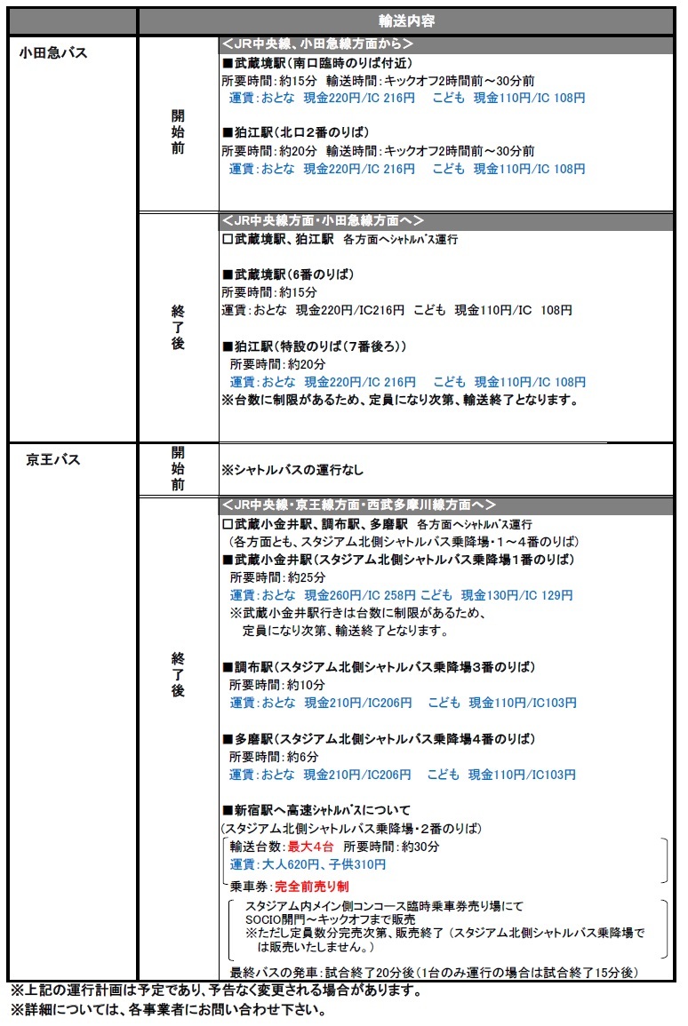 4/14(일) 2019 메이지 야스다 생명 J1 리그 제7절 vs 가시마 앤틀러스(14:00 킥오프/아지노모토 스타디움)에서 운행되는 셔틀버스·노선버스에 대해 안내드립니다.
