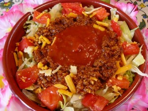 (7)오키나와 타코라이스・・・600엔 오키나와의 맛을 본격적으로 재현한 오키나와 타코라이스는 토핑도 다양하게 선택할 수 있습니다! |