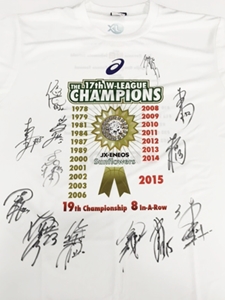 정답자에게는 「JX-ENEOS 선플라워즈」전 선수의 사인이 들어간 「JX-ENEOS 선플라워즈 W리그 우승 기념 티셔츠」를 선물로 드립니다!