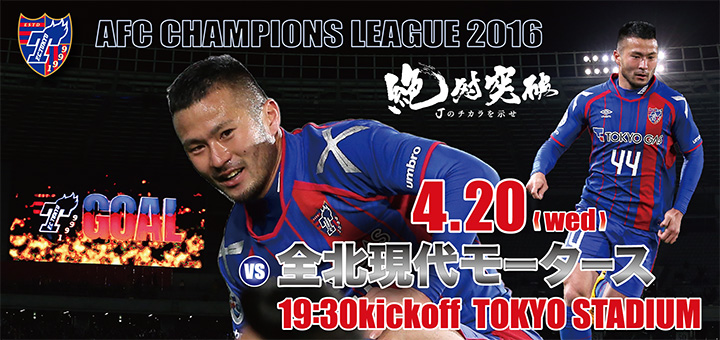 스카파!는 4/20(수)에 열리는 AFC 챔피언스리그 2016 그룹 스테이지 5차전 FC 도쿄 vs 전북현대 모터스(19:30 킥오프/도쿄 스타디움)를 BS 스카파!에서 생중계합니다!