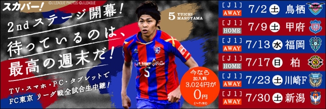 스카파!에서는 FC 도쿄의 J1리그 경기를 전 경기 생중계! 스타디움에 갈 수 없는 분들은 꼭 스카파!에서 FC 도쿄를 응원해 주세요!