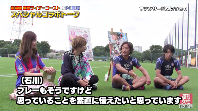 7월 17일(일) 가시와전 개최를 맞아 가면라이더 고스트/텐쿠지 타케루 역 배우 니시메 슌 씨와 FC 도쿄의 이시카와 나오히로 선수, 사사키 와타루 선수의 대담 인터뷰(텍스트 및 영상)가 아래 웹사이트에 게재되었음을 알려드립니다. 꼭 확인해 주세요!