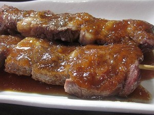 (2)아키카와 소고기 꼬치(1개)・・・800엔 도쿄에서 유일무이한 브랜드 와규 꼬치입니다. 희소한 소고기라 좀처럼 먹기 어려우니, 이 기회에 꼭 드셔보세요! |