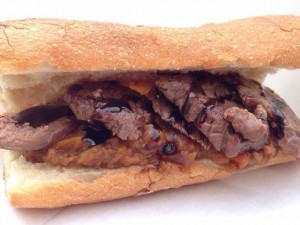 (8)지비에 샌드・・・650엔 요즘 화제인 지비에 고기를 맛있게 조리하여 프랑스 빵에 샌드한 건강한 샌드위치입니다. |