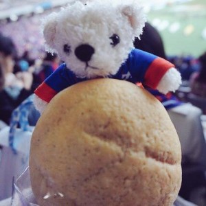 "식후에 멜론 크림빵! ♡ 겉은 바삭바삭 맛있어요! 마에다 씨, 힘내세요~"
