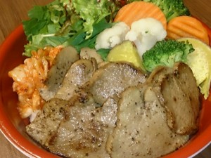 (13)온야채를 얹은 우설 덮밥・・・850엔 온야채에 신선한 샐러드를 얹어 야채를 듬뿍 섭취할 수 있는 건강한 우설 덮밥입니다. |