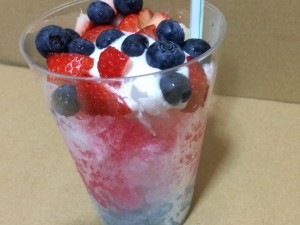 (18)청적 프라페・・・500엔 청적 시럽을 사용한 빙수에 터키 아이스크림을 올렸습니다! 더욱이 믹스 베리를 올린 욕심쟁이 프라페입니다. |