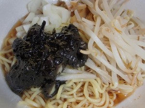 (3)히가시무라야마 아부라소바・・・700엔 도쿄 다마 지역에서 시작된 도쿄의 숨겨진 B급 미식 ‘아부라소바’에 히가시무라야마 명물인 검은 소스로 만든 특제 고기 미소를 토핑한 특제 NEW 아부라소바입니다. |