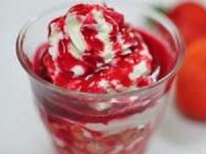 (7)딸기 빙수・・・500엔 플로즌 스트로베리에 특제 소스를 뿌려 제공합니다. |