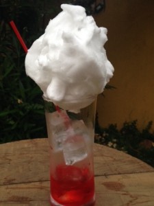 (9)솜사탕 소다・・・600엔 귀여운 분홍색 소다 위에 큰 솜사탕을 올렸습니다! |