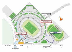 스타디움 입장 후에는 청적 가로초로 가실 때 '메인 4게이트' 및 '백 1게이트'를 이용해 주시기 바랍니다.