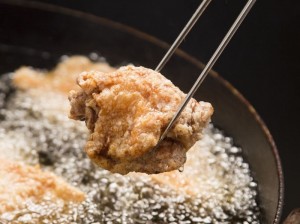 도쿄도 지역 특산품 인증 식품인 「하마네 소금」을 사용한, 여기에서만 먹을 수 있는 아주 즙이 풍부한 미즈타키 닭튀김입니다.