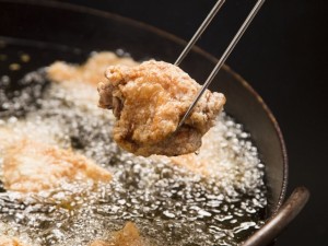 (7)오에도 가라아게(허벅지)・・・700엔 가라아게 튀김옷에 에도 하층가의 간장 센베이를 사용한 도쿄 창작 가라아게입니다. 겉은 바삭하고 속은 부드럽고 즙이 풍부한 절품 가라아게입니다.