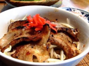 (14)불에 그을린 간장 돼지 삼겹살 덮밥・・・1,000엔 향기로운 불에 그을린 간장과 고소한 돼지 삼겹살을 밥 위에 올렸습니다. 달콤짭짤한 양념이라 밥이 술술 넘어갑니다! |